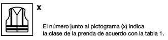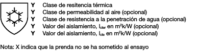 Debe marcarse sobre la prenda el siguiente pictograma, seguido del número de esta norma y de las clases pertinentes tal y como se indica a continuación: