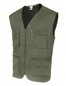 2 bolsillos inferiores de fuelle con cremallera, sobre ellos, dos bolsillos con tapeta, tirador y velcro COMPOSICION EXTERIOR. SARGA: 80% POLIÉSTER - 20% ALGODÓN. INTERIOR. REJILLA: 100% POLIÉSTER